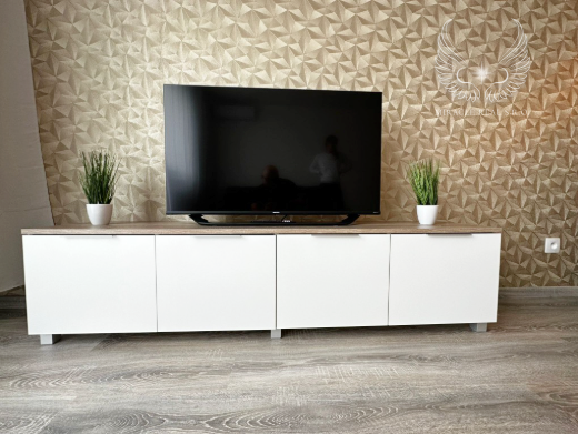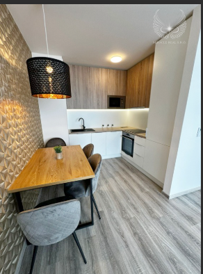 Jedálenský stôl ponúka pohodlné sedenie pre 4 osoby. Byt je klimatizovaný jednotkou Sinclair, čo zabezpečuje komfort počas celého roka.