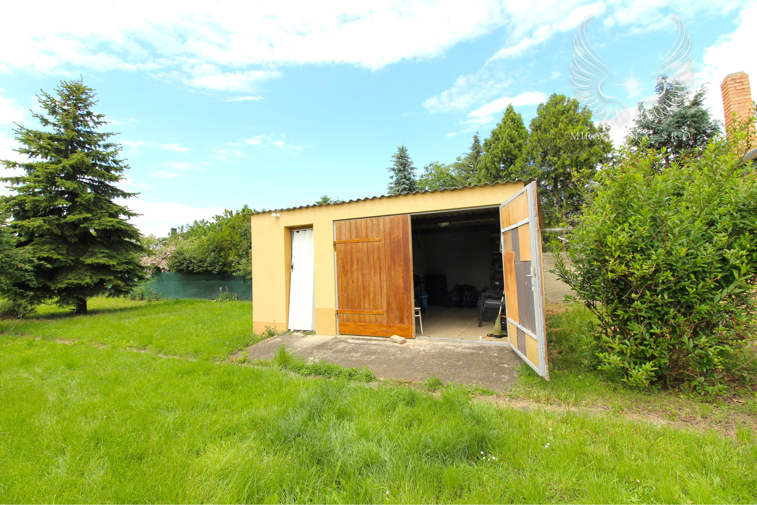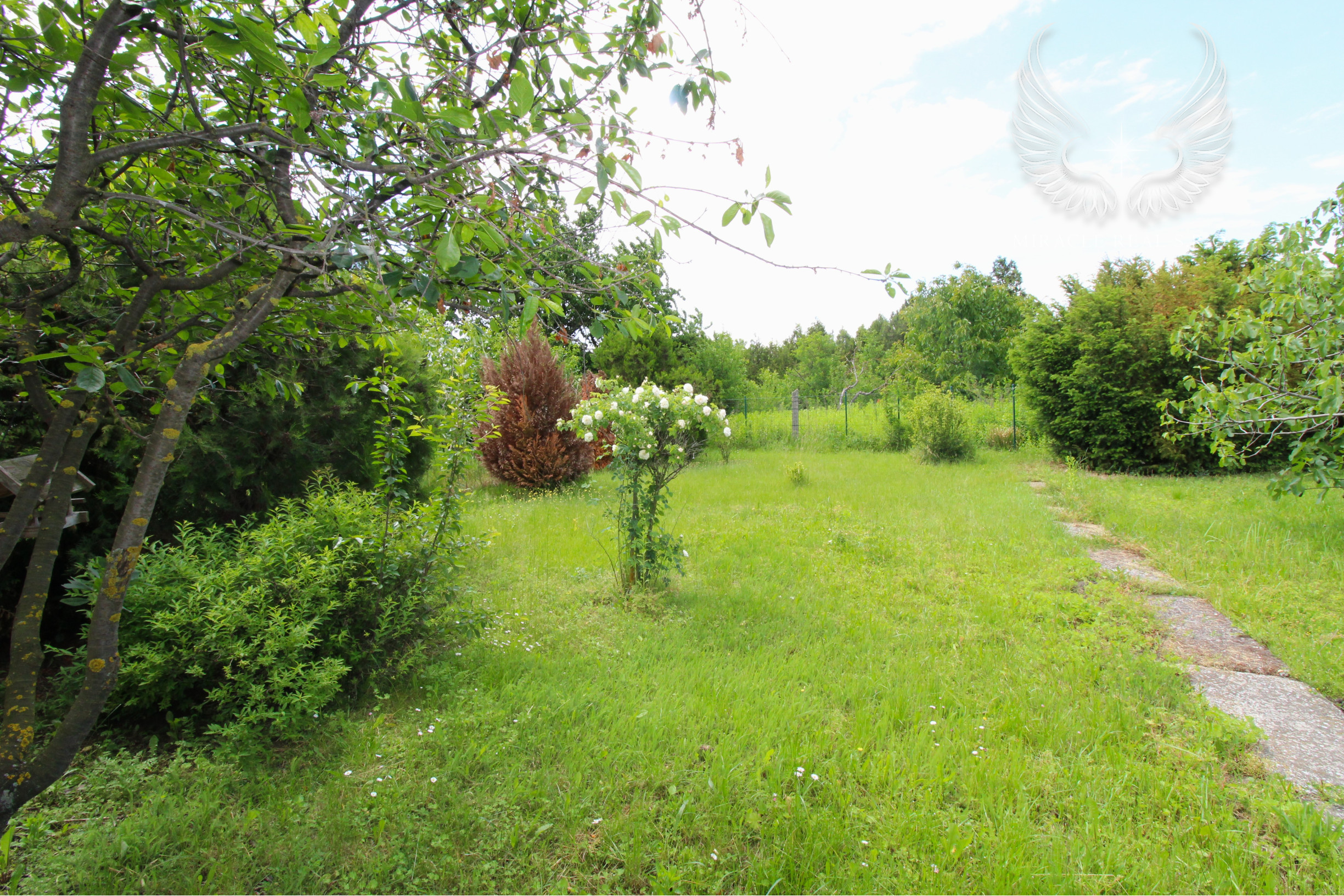 Záhrada ponúka, okrem oddychu, aj ovocné stromy a možnosť pestovania zeleniny. Závlaha je zabezpečená z vlastného vodného zdroja.